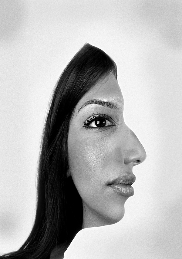 Photomontage réunissant un portrait de face et de profil en une seule image