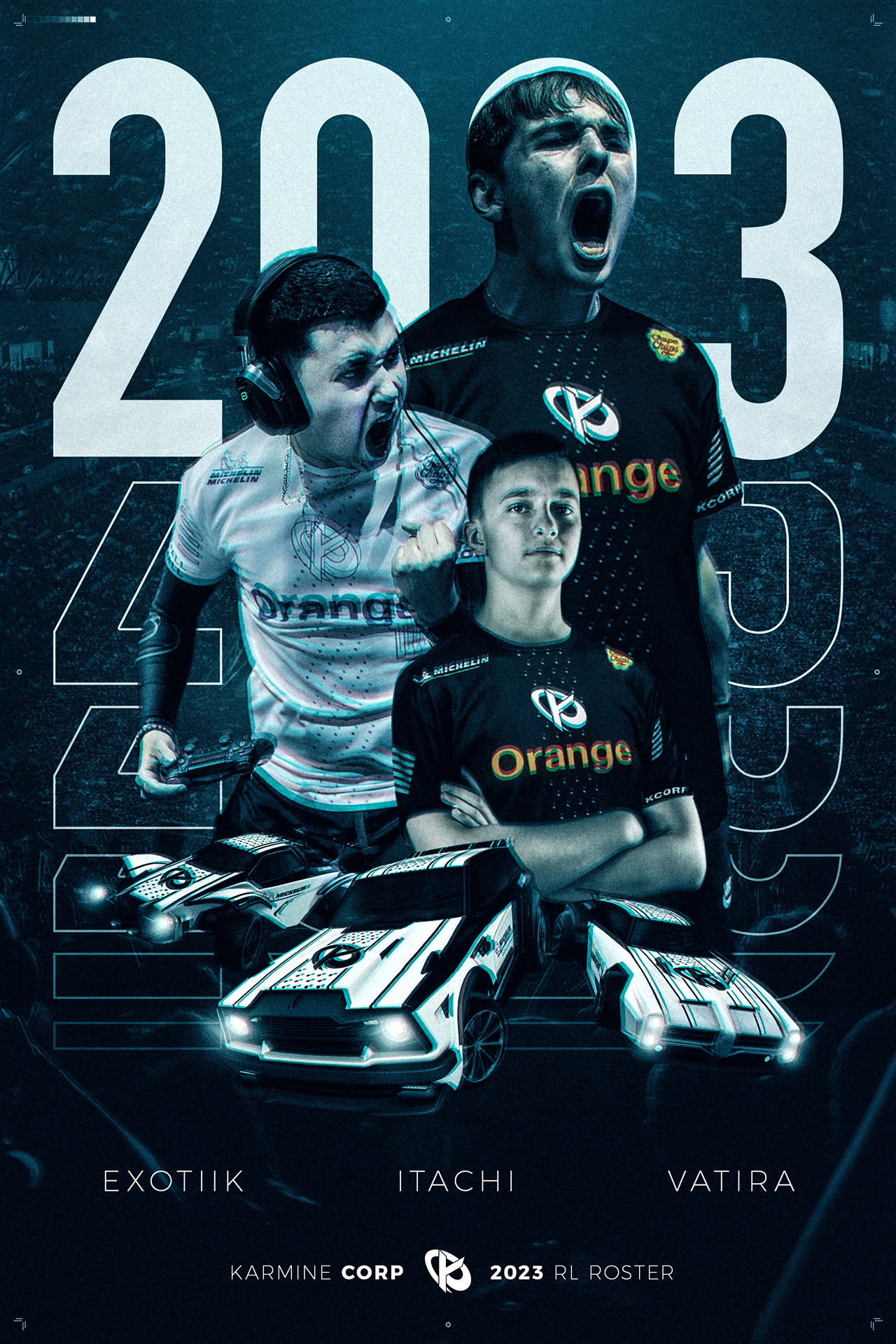Posters pour l’annonce du roster Rocket League de l’équipe esports Karmine Corp, ainsi qu’un fan art LEC en rapport avec la rumeur Karmine Corp en LEC qui a fait parler en 2022.